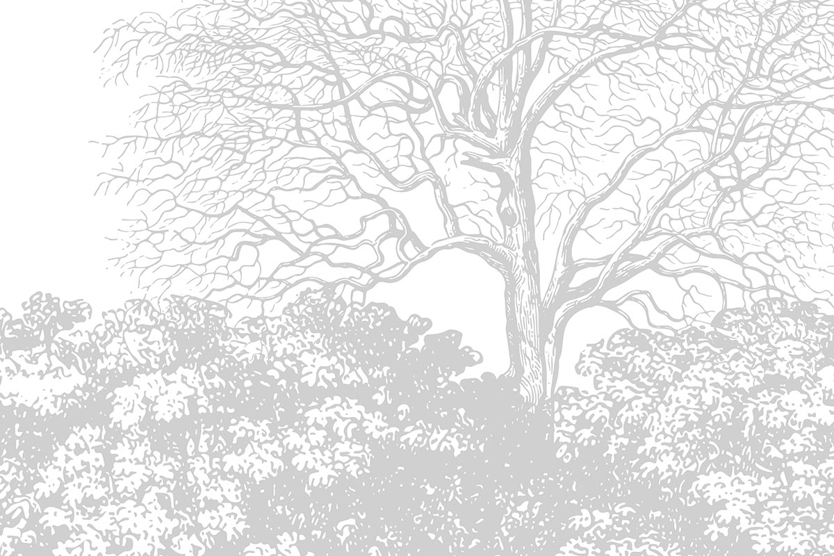 Rustig bosbehang met vintage afbeeldingen van bomen.