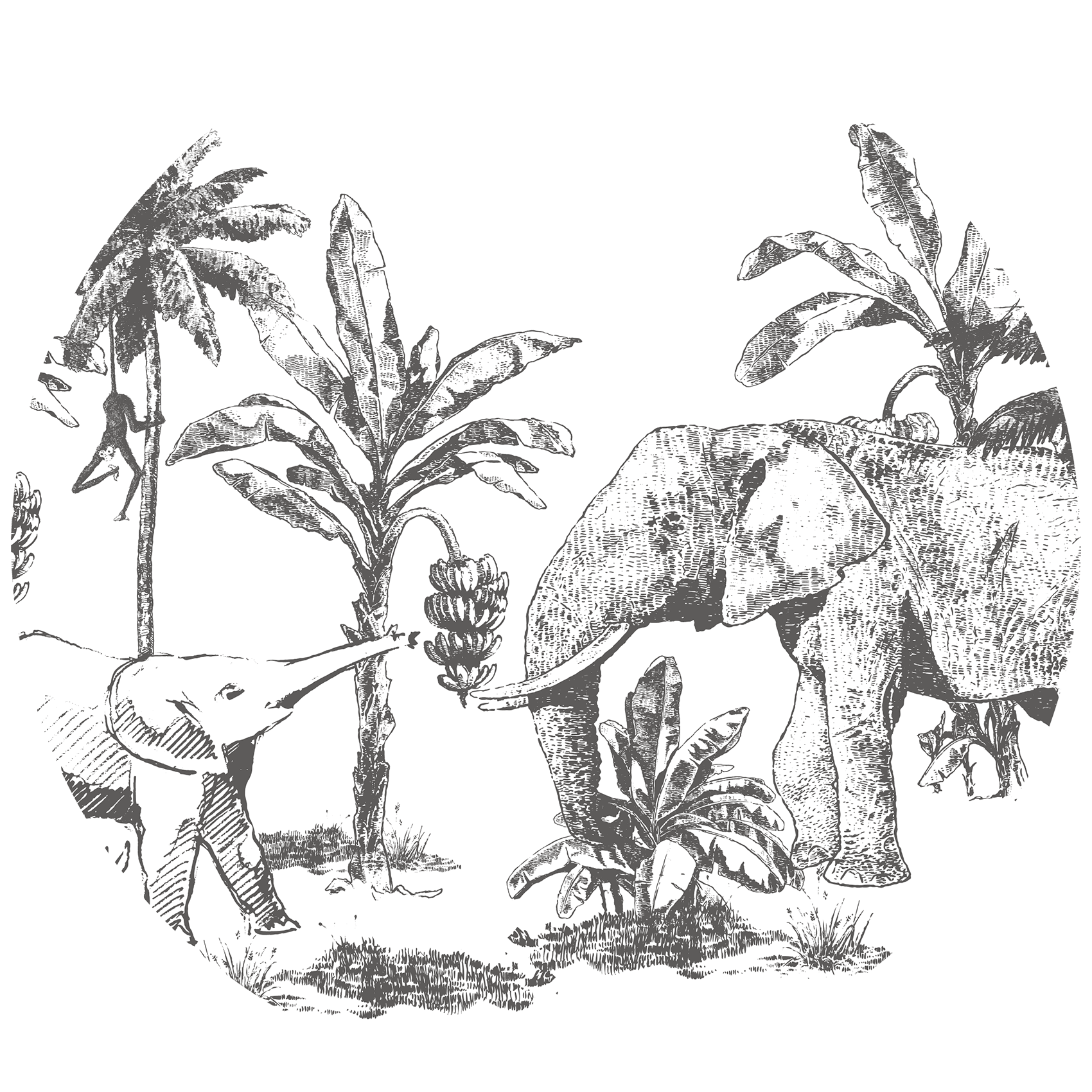 Bring the jungle indoors with these beautiful sketches of a mother and baby elephant amidst tropical plants. The detailed drawings in soft gray give the wallpaper circle a minimalist style. Perfect for a unique yet calming kids’ room. Give the kids’ room an instant atmosphere boost with this stunning wallpaper circle!